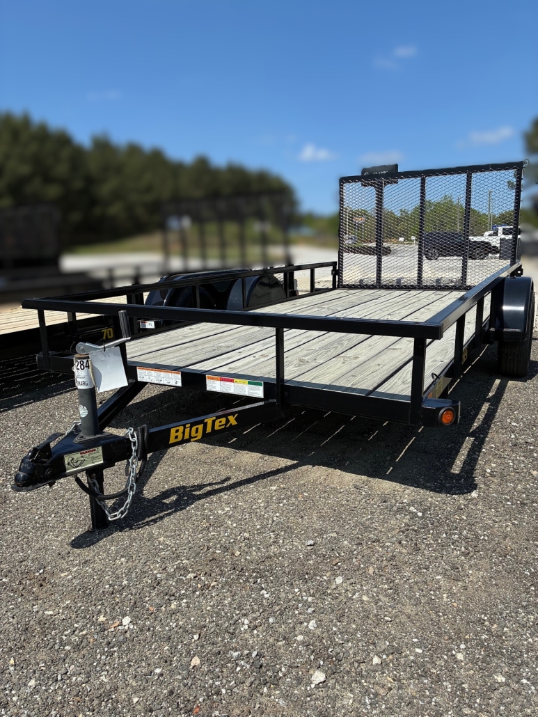 This 77″ x 14′ utility trailer delivers a dependable 1,900–2,000+ lb payload capacity on a 3,500‑lb quick‑lube axle. It features a 4′ spring‑assisted 3‑way ramp gate, sturdy open‑side steel framing, LED DOT lighting, and durable ST205/75R‑15 tires for reliable everyday hauling.